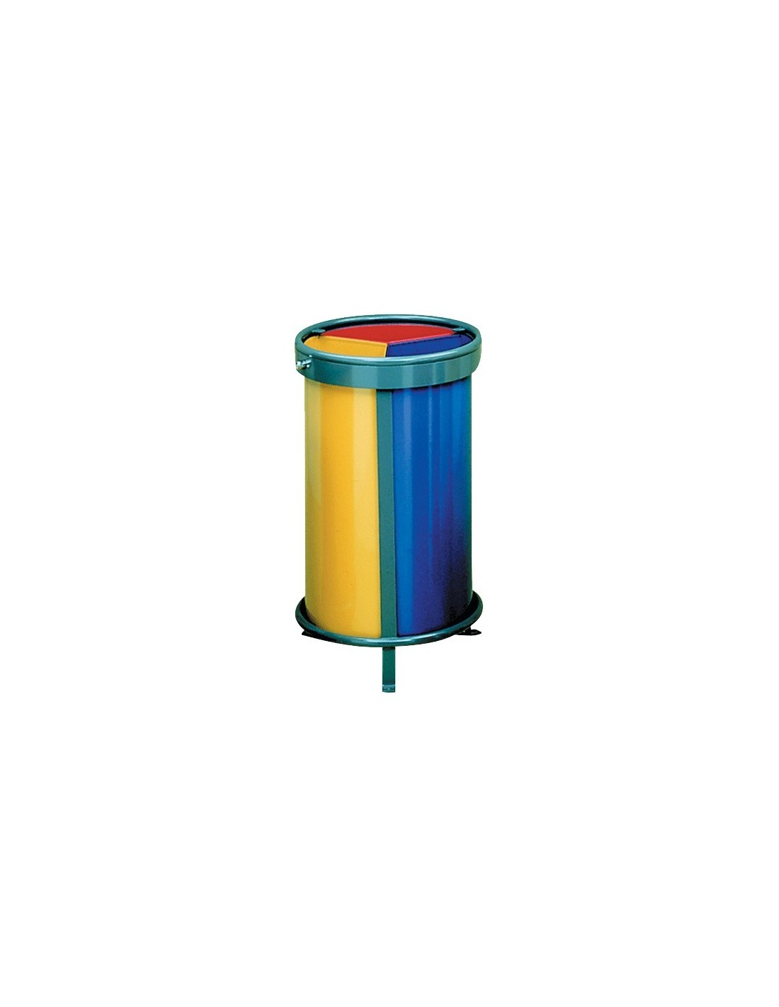 Papelera de acero galvanizado y pintado, con 2 o 3 compartimentos de diferentes colores para reciclaje.