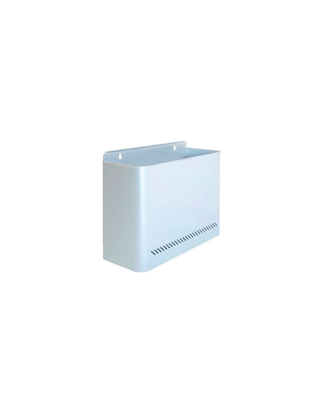 Papelera metálica de pared para garaje y exterior fabricada en acero plata.