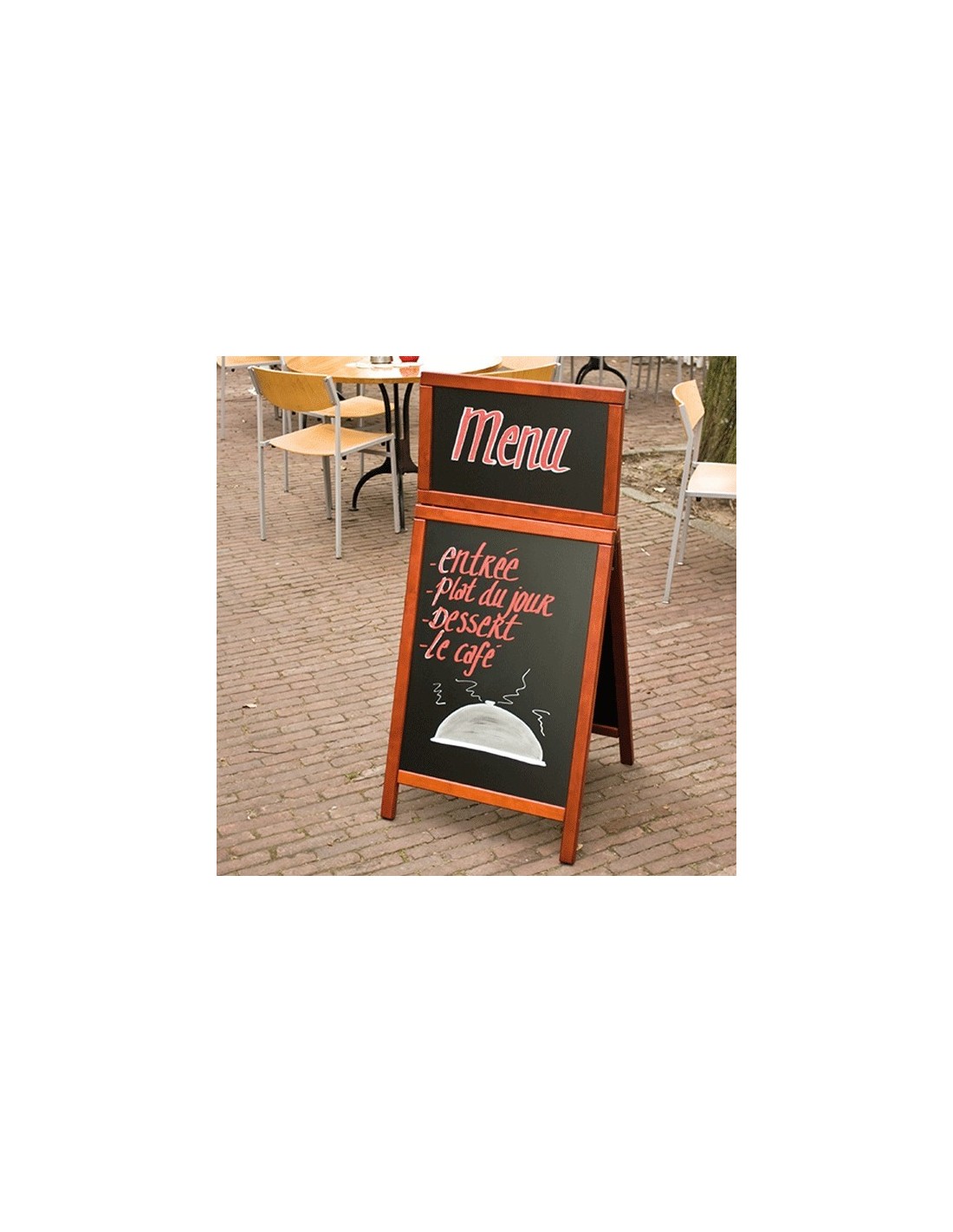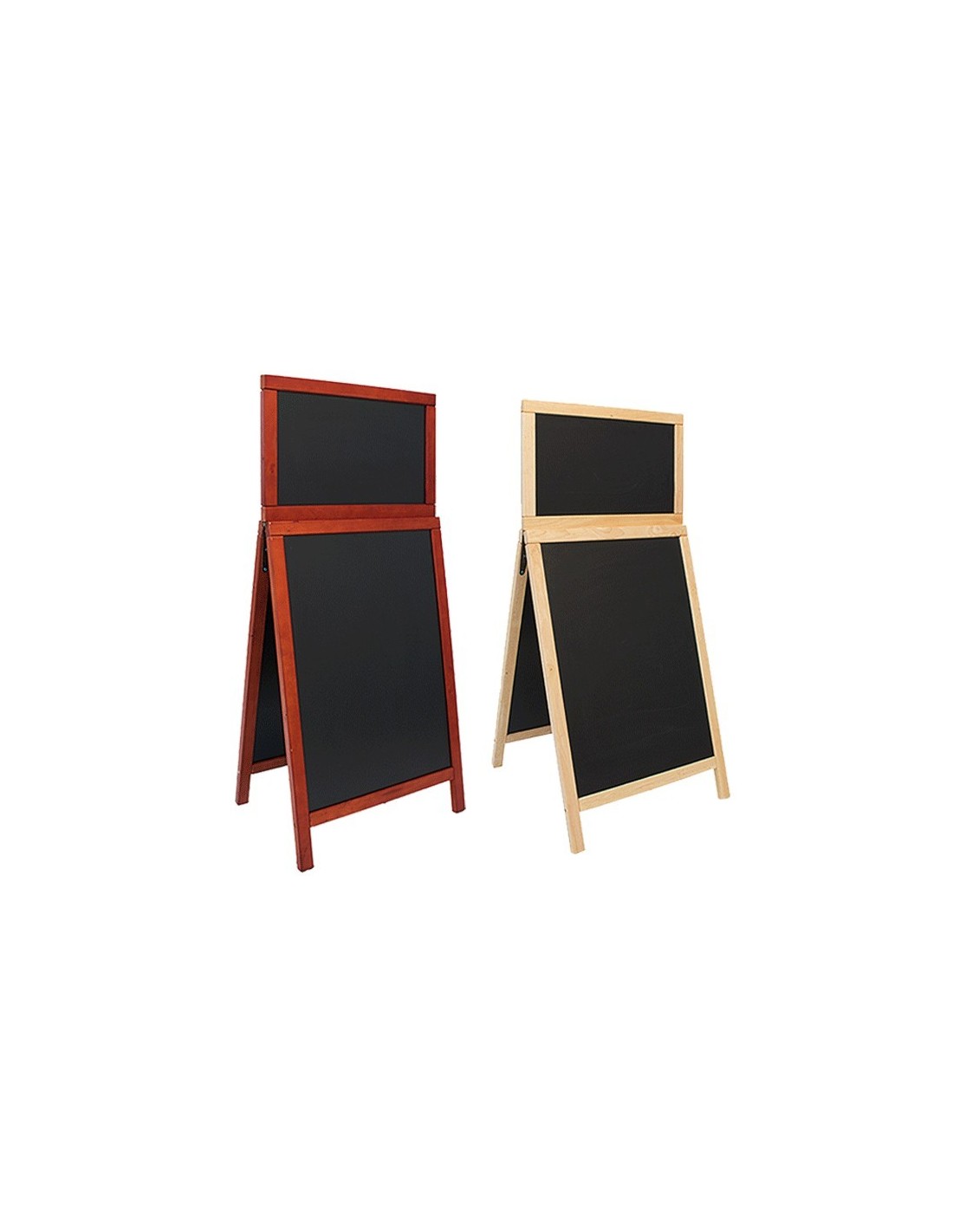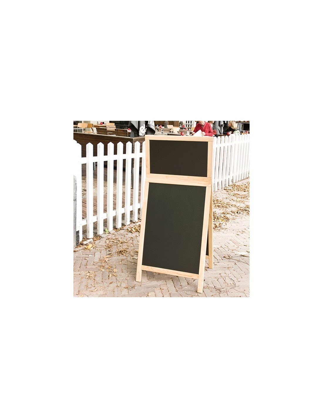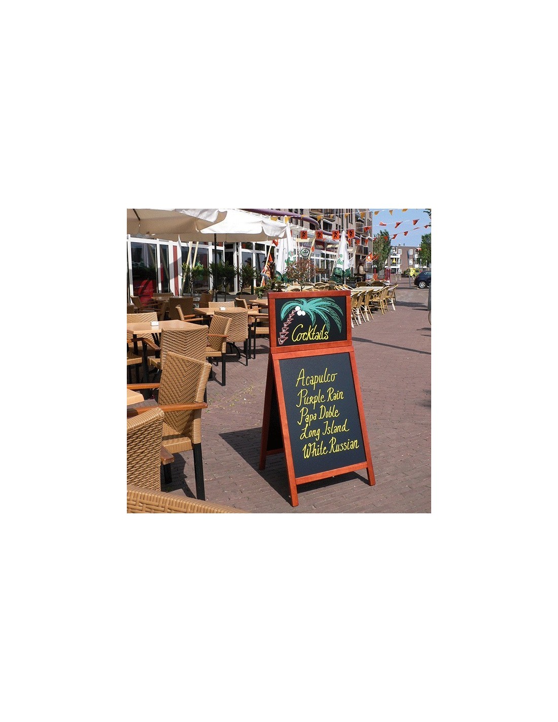 Pizarra caballete con cartel superior desmontable, que incluye sistema de seguridad antirrobo.